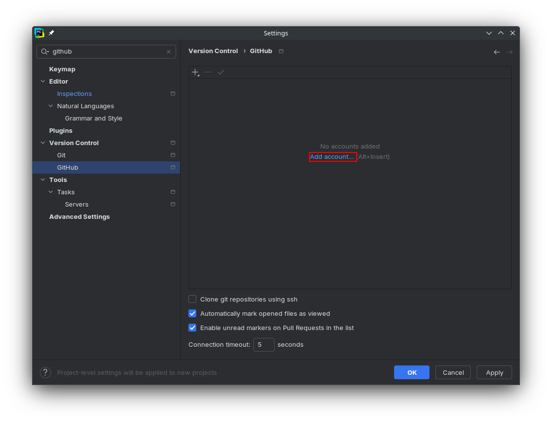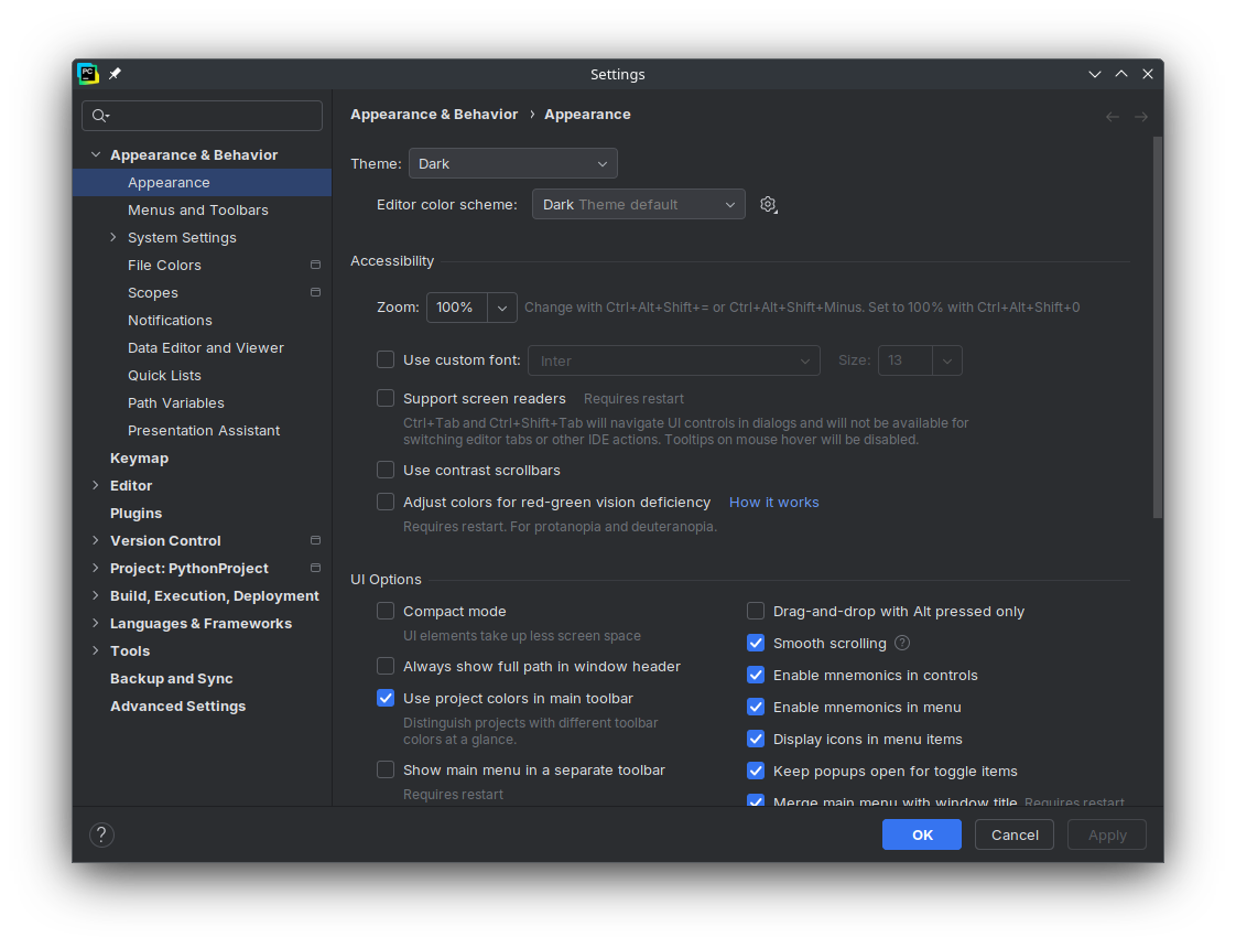 Opening PyCharm Settings