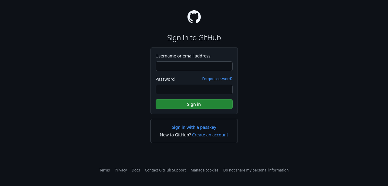 Your browser will open to a GitHub login page. Make sure you sign in with the GitHub account that you plan on using to submit coursework.
