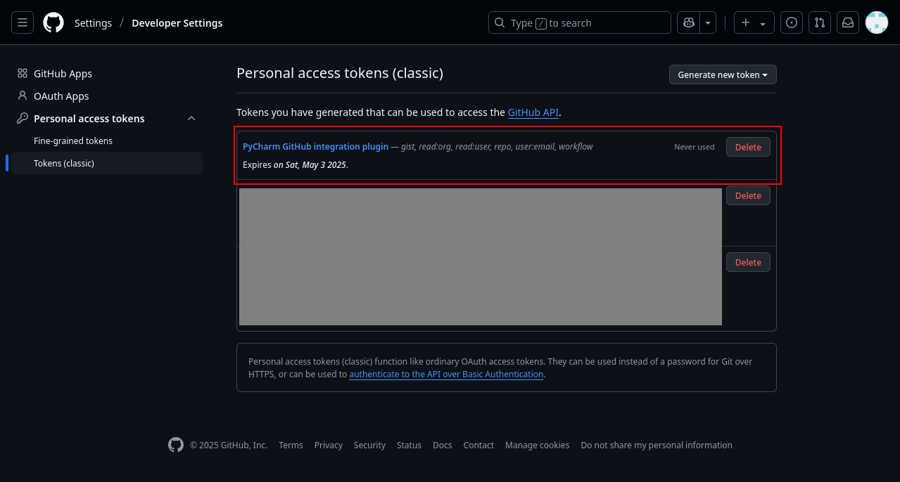 Warning: The Personal Access Token alone is capable of signing into your account, without even entering your username. Never share it with anyone else, for example, with a classmate over Discord.