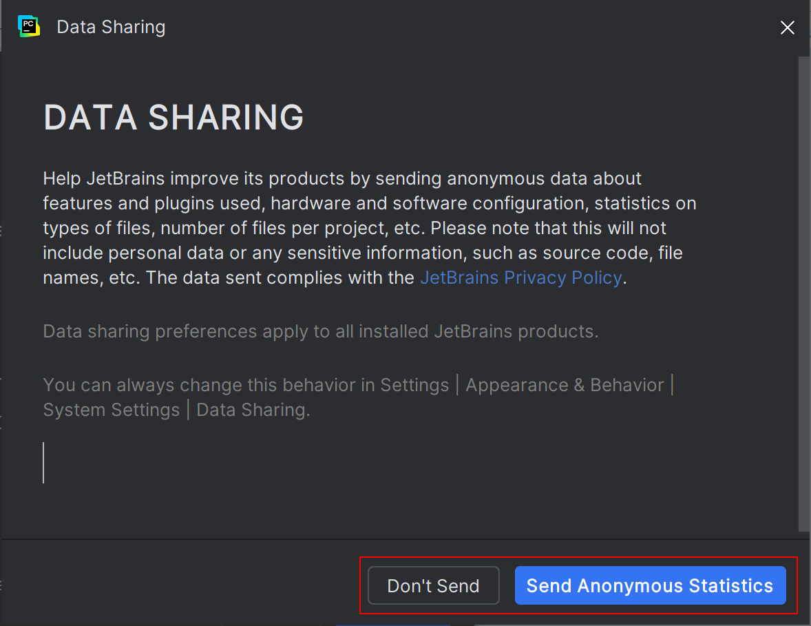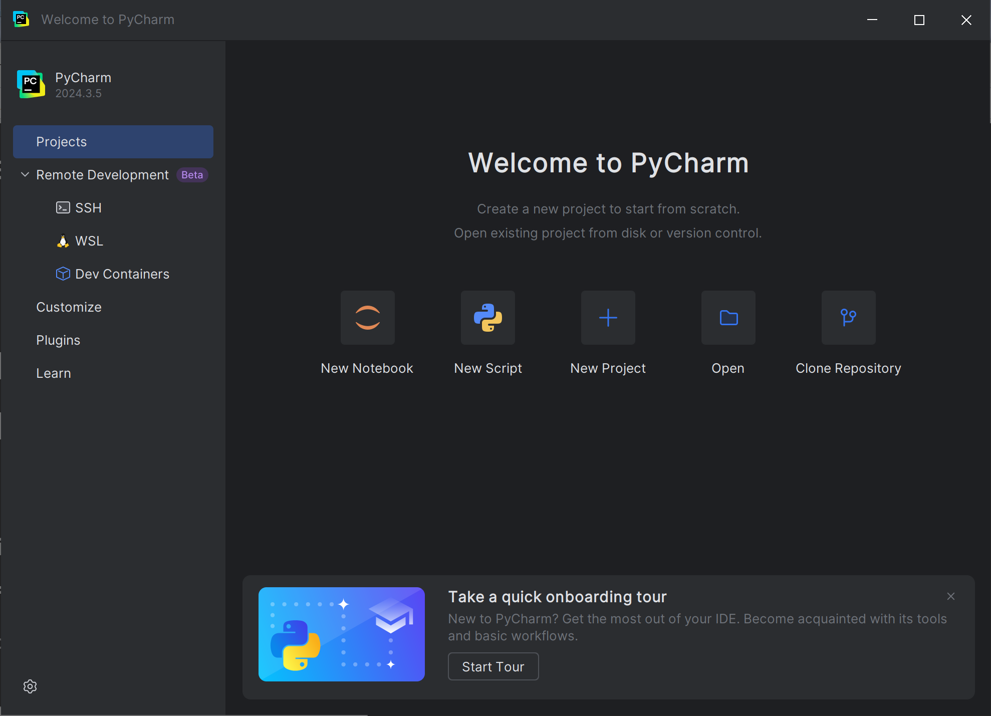 Run PyCharmand then clickFinish. The newly installed PyCharm will open.